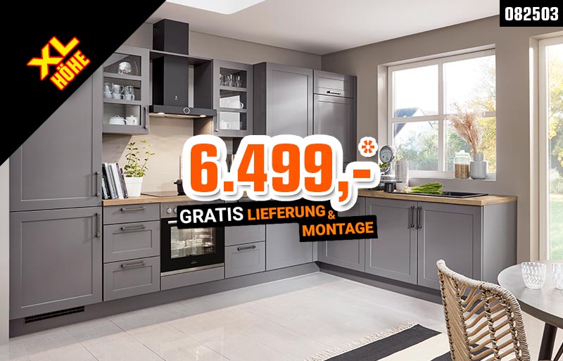 Nordic nobilia®-Winkelküche im Landhausstil mit Fronten in Lack, Schiefergrau matt 6.499€*