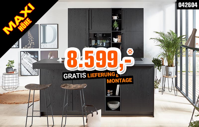 Structura Stylische nobilia®- Küchenkombination mit Fronten in Eiche Nero Nachbildung 8.599€*