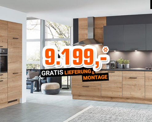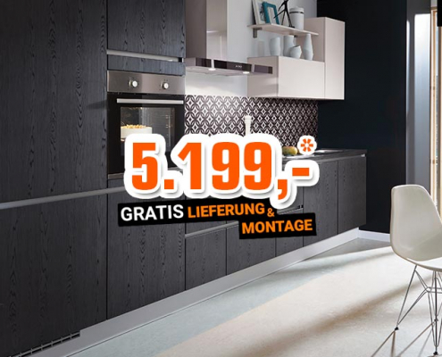 Structura/ Laser Grifflose nobilia®- Küchenzeile mit Fronten und Arbeitsplatte in Eiche Nero Nachbildung 5.199€*