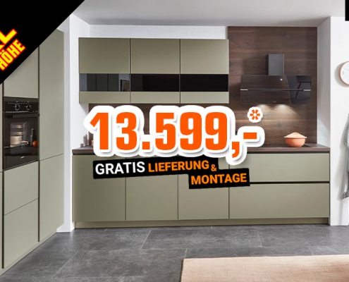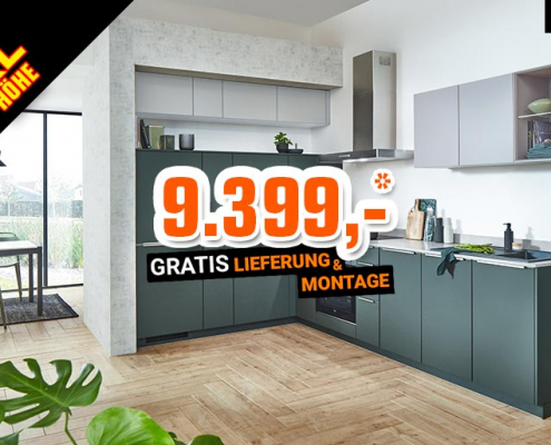 Easytouch Moderne nobilia®- Winkelküche mit Fronten in Lacklaminat, Mineralgrün ultramatt 9.399€*