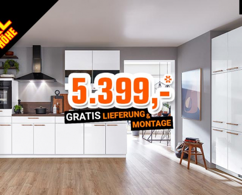 Novalux Moderne nobilia®- Küchenkombination mit Fronten in Lack, Weiß Hochglanz 5.399€*