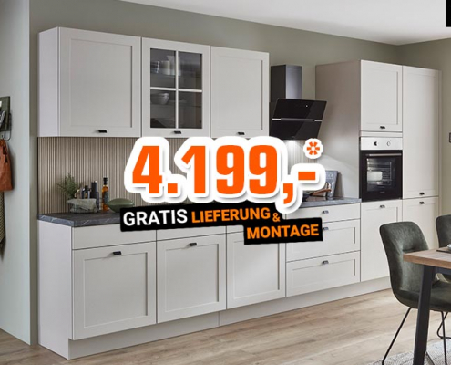 Nordic nobilia®-Küchenzeile im modernen Landhausstil mit Fronten in Lack, Sand matt 4.199€*