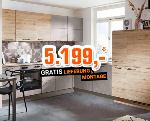 StoneArt/Riva Stylische nobilia®- Winkelküche mit Fronten in Basalt Taupegrau Nachbildung 5.199€*