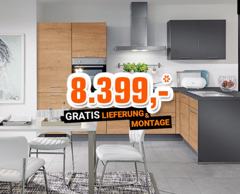 Structura Stylische nobilia®- Winkelküche mit Fronten in Eiche Nero Nachbildung und Eiche Como Nachbildung 6.999€*