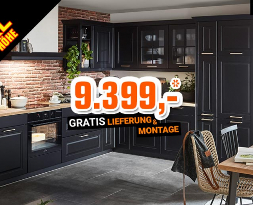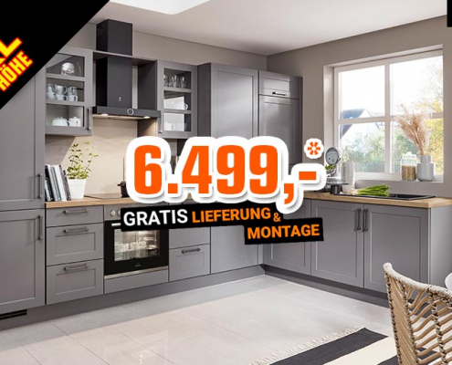 Nordic nobilia®-Winkelküche im Landhausstil mit Fronten in Lack, Schiefergrau matt 6.499€*